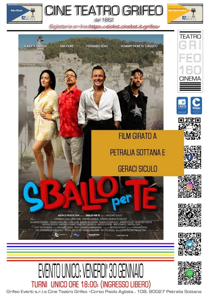 Questo weekend al #grifeo: Venerdì 30 gennaio, evento unico con la commedia tutta da ridere Sballo per te, film girato in parte a #petraliasottana e #geracisiculo. Da sabato 31 gennaio a martedì 3 febbraio invece l'ultimo capolavoro di #paolosorrentino: #LaGrazia con #TonyServillo .