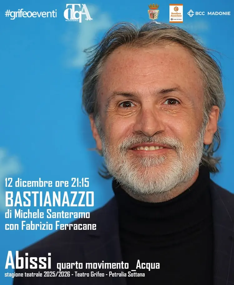 🌊 Primo appuntamento con Abissi quarto movimento _Acqua 12 dicembre • ore 21:15 • Teatro Grifeo BASTIANAZZO • di Michele Santeramo con Fabrizio Ferracane C’è un uomo disteso a terra, che decide di non rialzarsi più. Da quella immobilità comincia un viaggio nelle pieghe profonde della fatica, della t