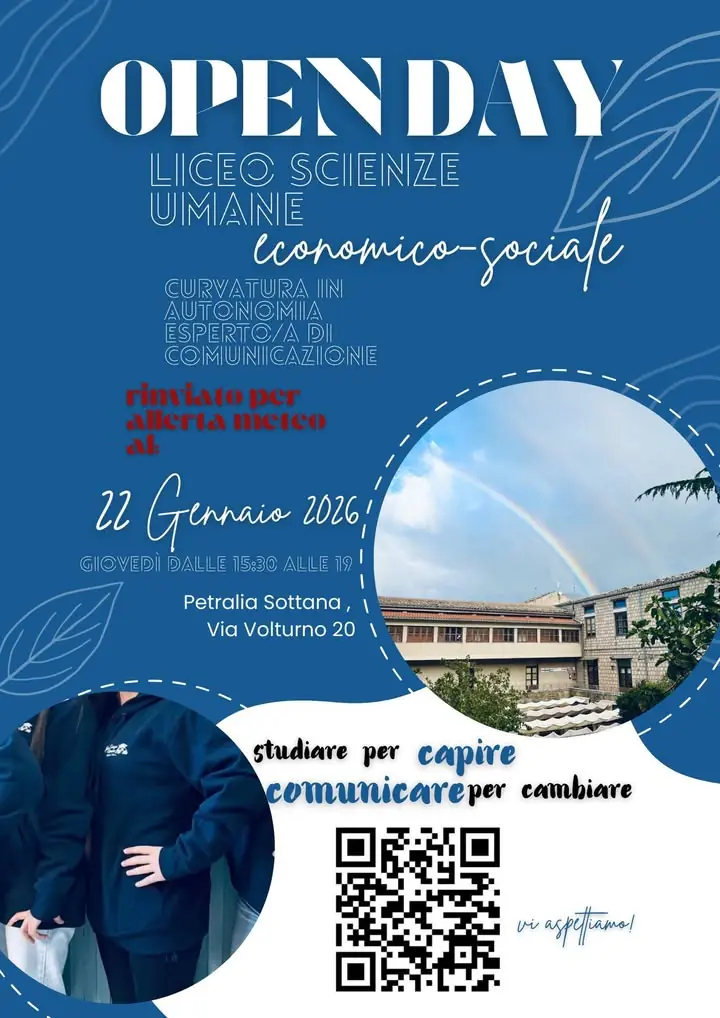I.I.S. "Pietro Domina" Liceo delle Scienze Umane -LES Opzione economico sociale curvatura in autonomia esperto/a di comunicazione Siamo pronti 🍀 Vi aspettiamo all' Open Day Lunedì 19 gennaio 2026 dalle ore 15.30 alle 19.00 a Petralia Sottana