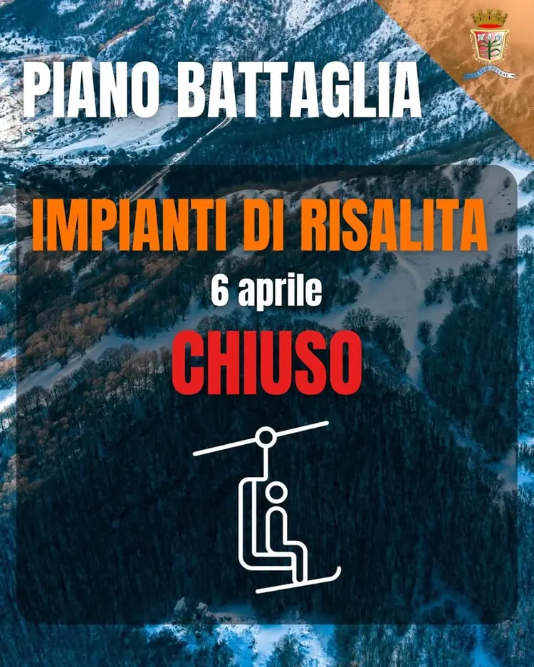 ⛷️Impianti di risalita 6 aprile CHIUSO La Palermo Energia informa che, a causa dell’innalzamento delle temperature e della conseguente riduzione del manto nevoso, da domani gli impianti di risalita a Piano Battaglia saranno chiusi. #pianobattaglia #viabilità #impianti #risalita #scii