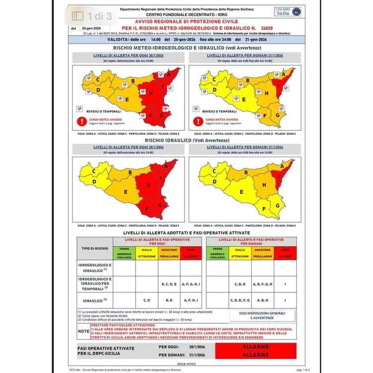 🔔AVVISO DI CONDIZIONI METEO AVVERSE Si informa la cittadinanza che in riferimento all'ultimo bollettino meteo trasmesso ai comuni dal Dipartimento Regionale di Protezione Civile, che prevede per la giornata di domani, martedì 20 gennaio un livello di allerta ARANCIONE (Petralia Sottana zona E) il S