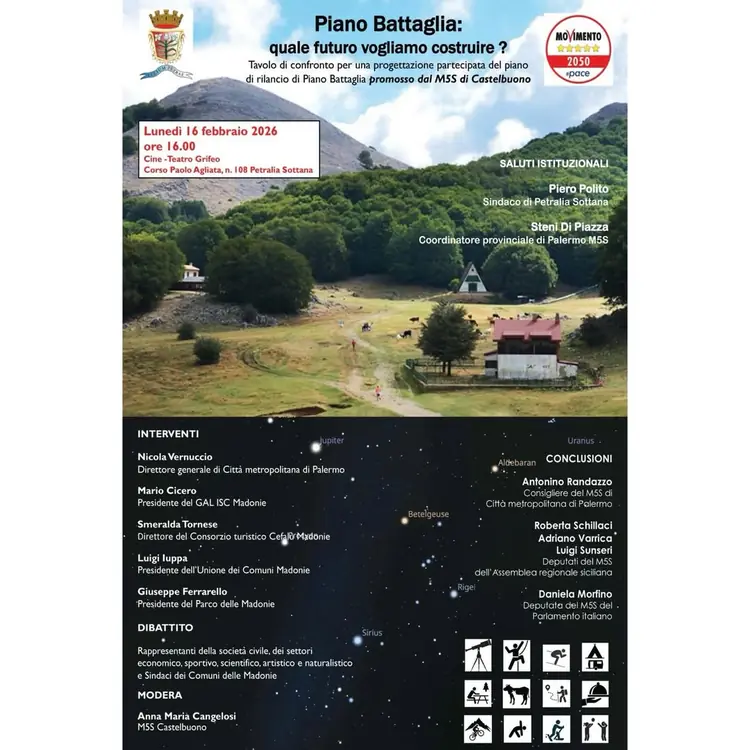 lunedì 16 febbraio 2026, alle ore 16, presso il Cine-Teatro Grifeo di Petralia Sottana.